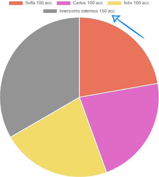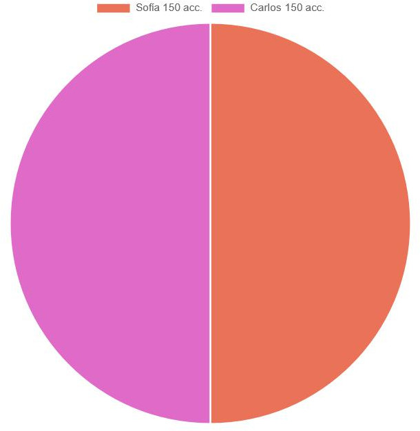 Inés quiere vender todas sus acciones a un inversor externo, pero Sofía y Carlos deciden hacer uso de su Derecho de Adquisición Preferente y compran cada uno 50 de las acciones de Inés: