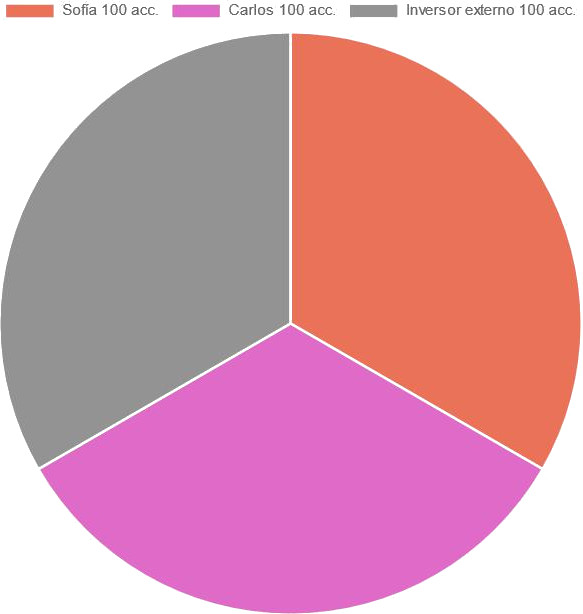 La Empresa X tiene inicialmente 3 socios principales, Sofía, Carlos e Inés, con 100 acciones cada uno: