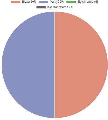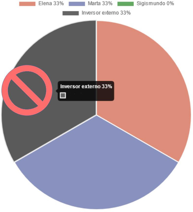 Al final, Sigismundo y el inversor externo acaban fuera de la sociedad, mientras que Elena y Marta acaban poseyendo cada una 150 acciones de Servicios Digitales SA, es decir: el 50% cada una.